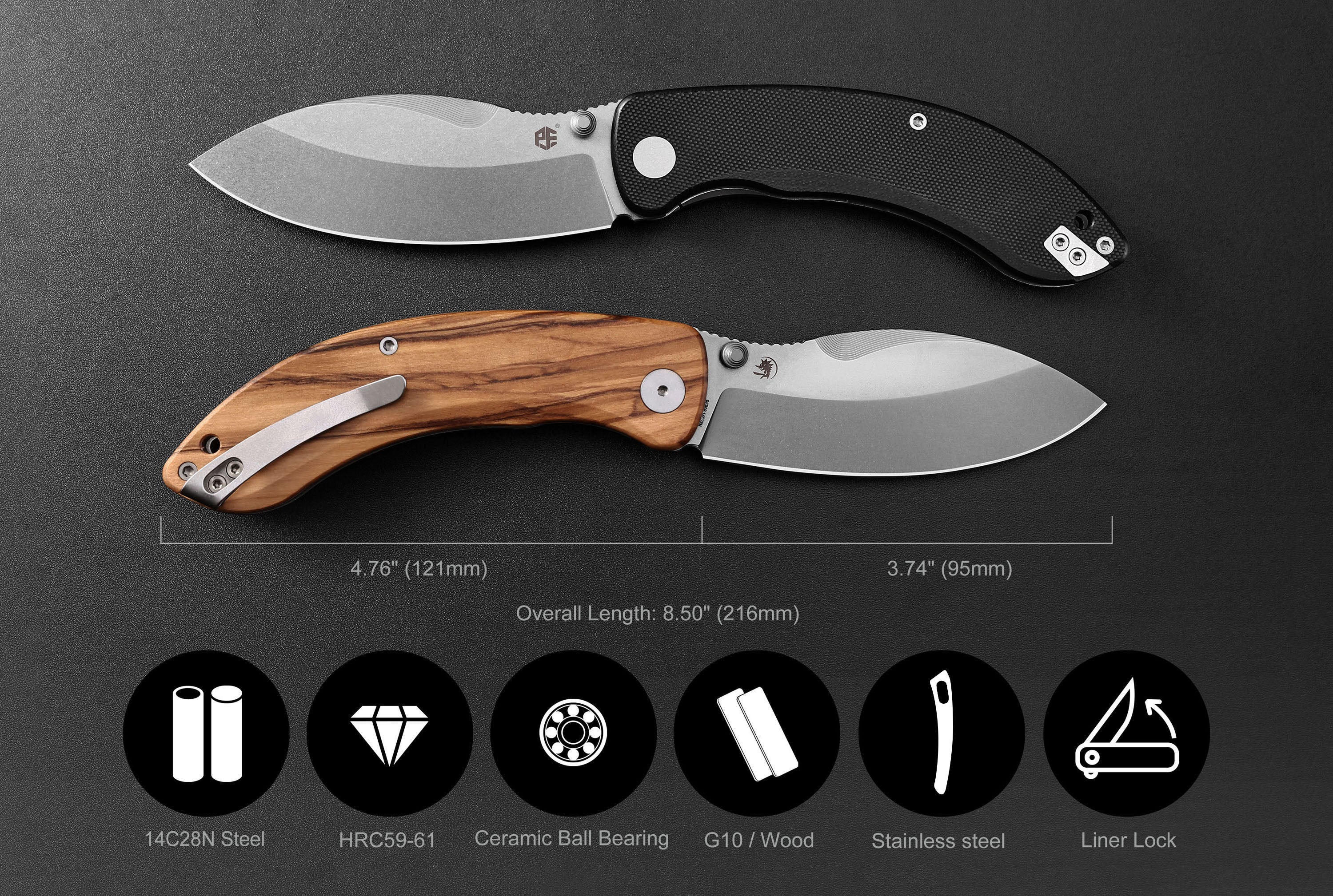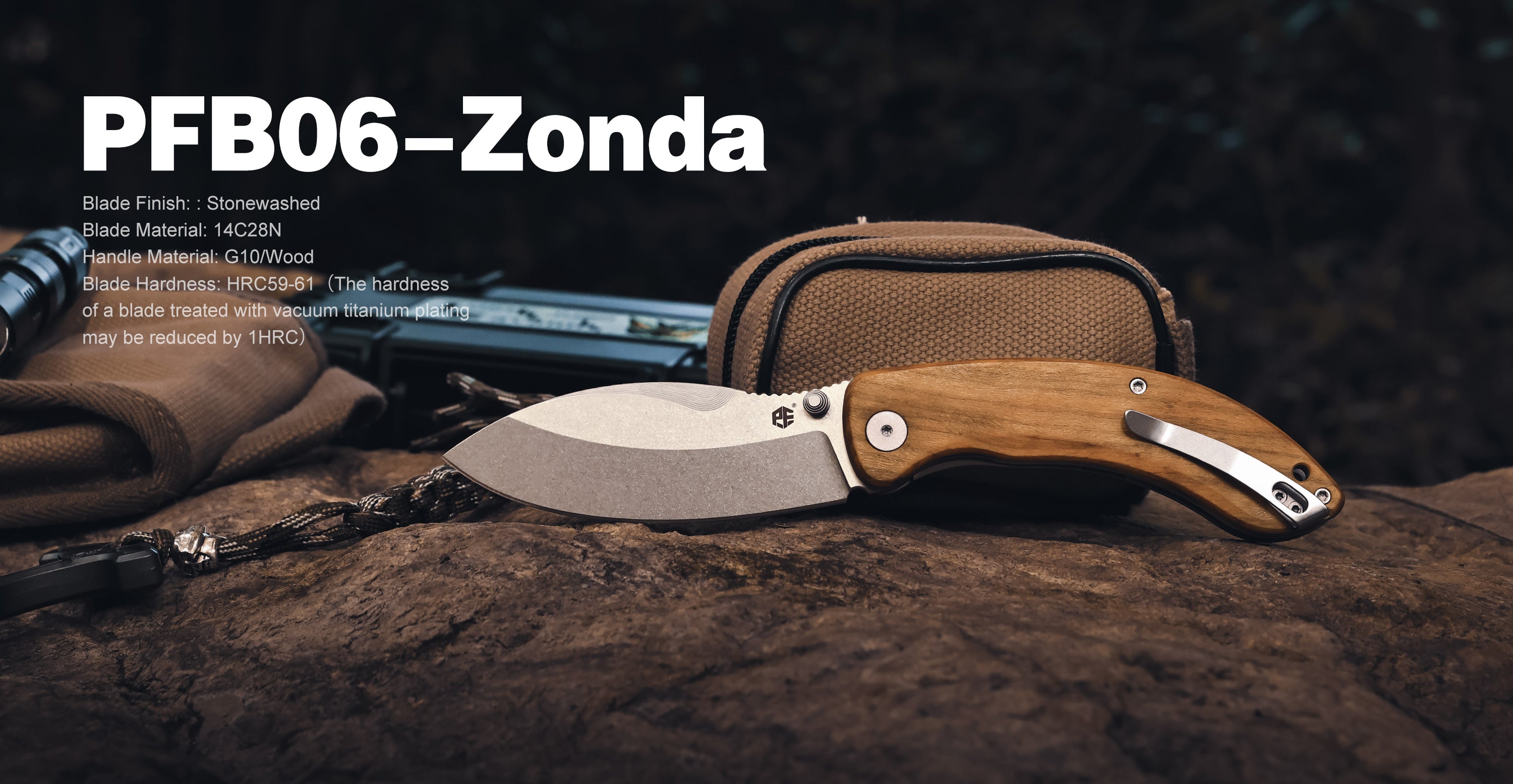 Petrified Fish PFB06 - Zonda, 3.74" 14C28N Steel Blade, G10/Wood Handle, Liner Lock Folding knife