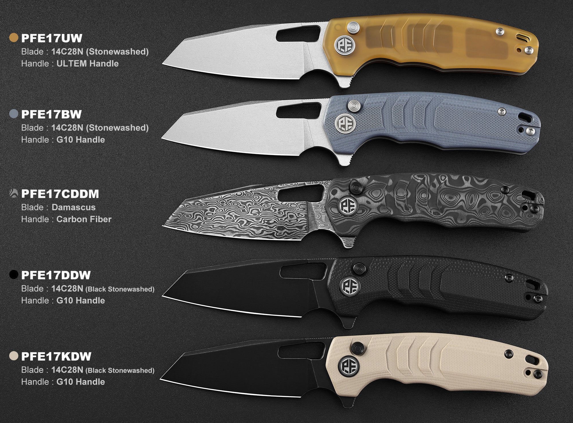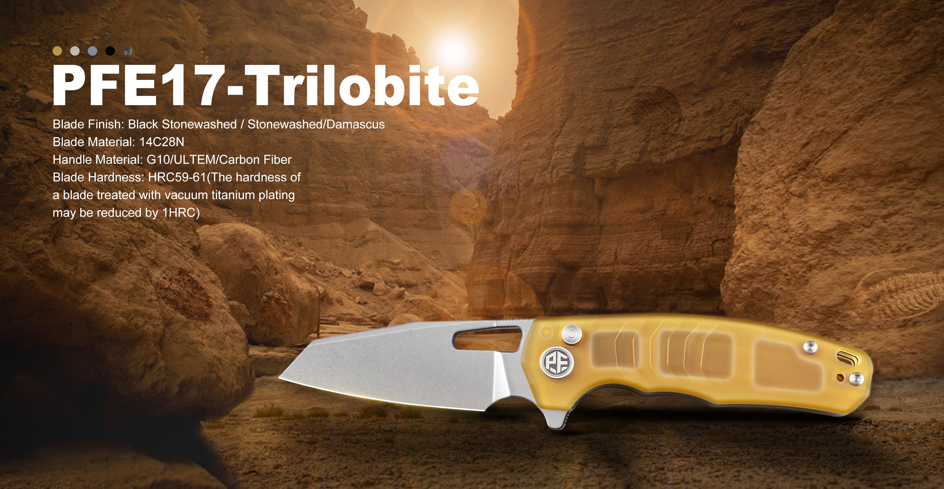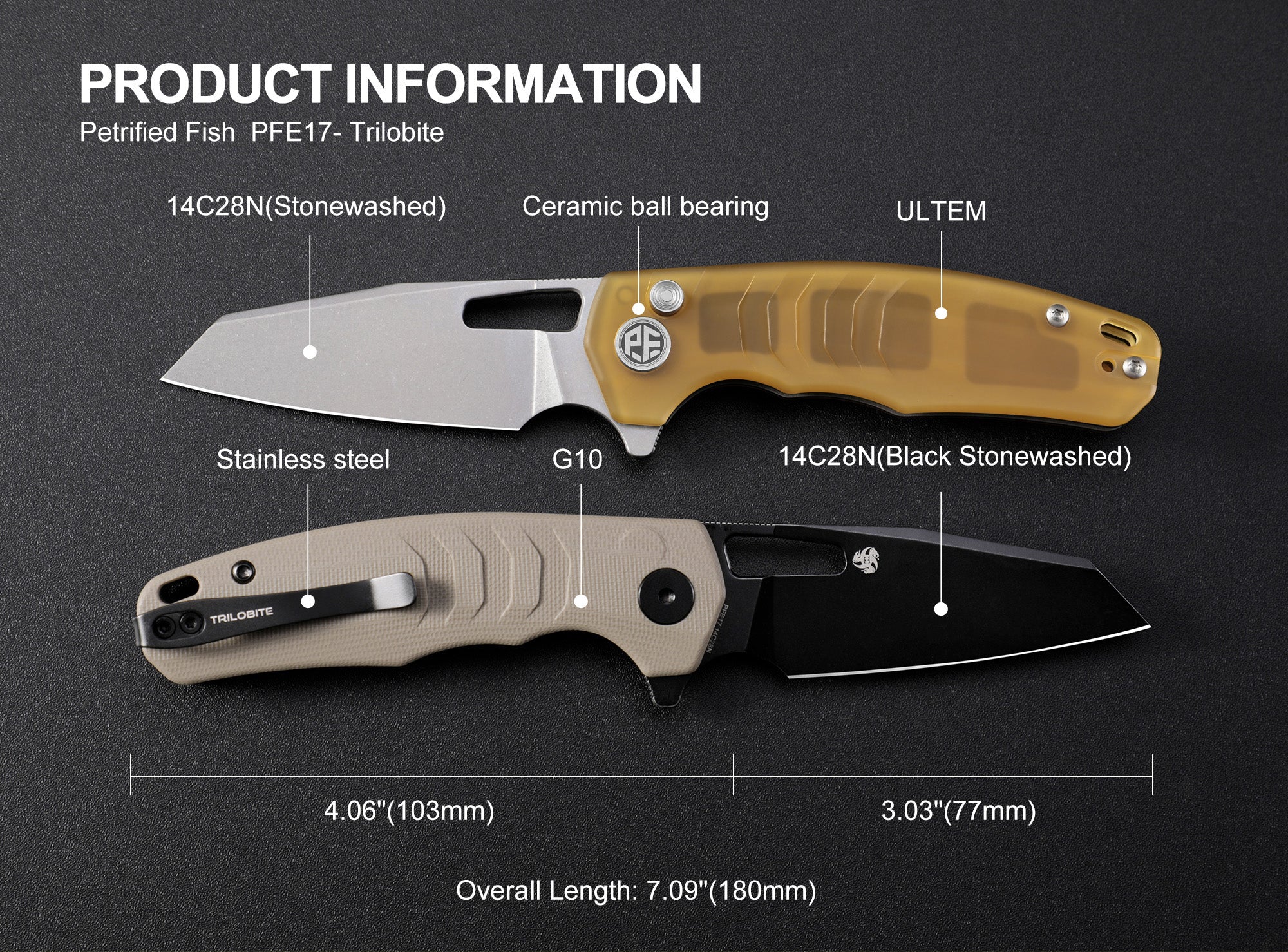 Petrified Fish PFE17 Trilobite,3.03" 14C28N Steel Blade,G10/ULTEM/Carbon Fiber Handle,Flipper Button Lock Folding Knife