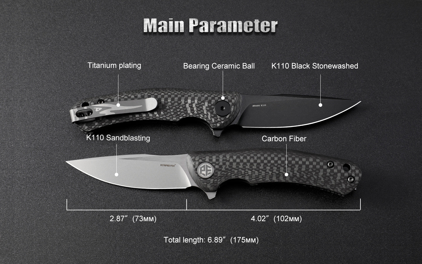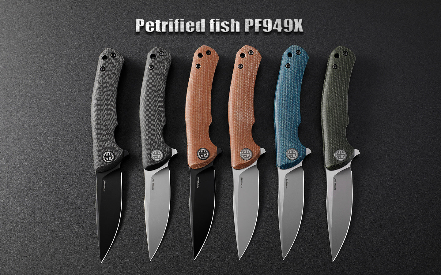 Petrified Fish PF949X Warrior,2.87" K110 Blade,Micarta/Carbon fiber Handle,Flipper Liner Lock Folding Knife