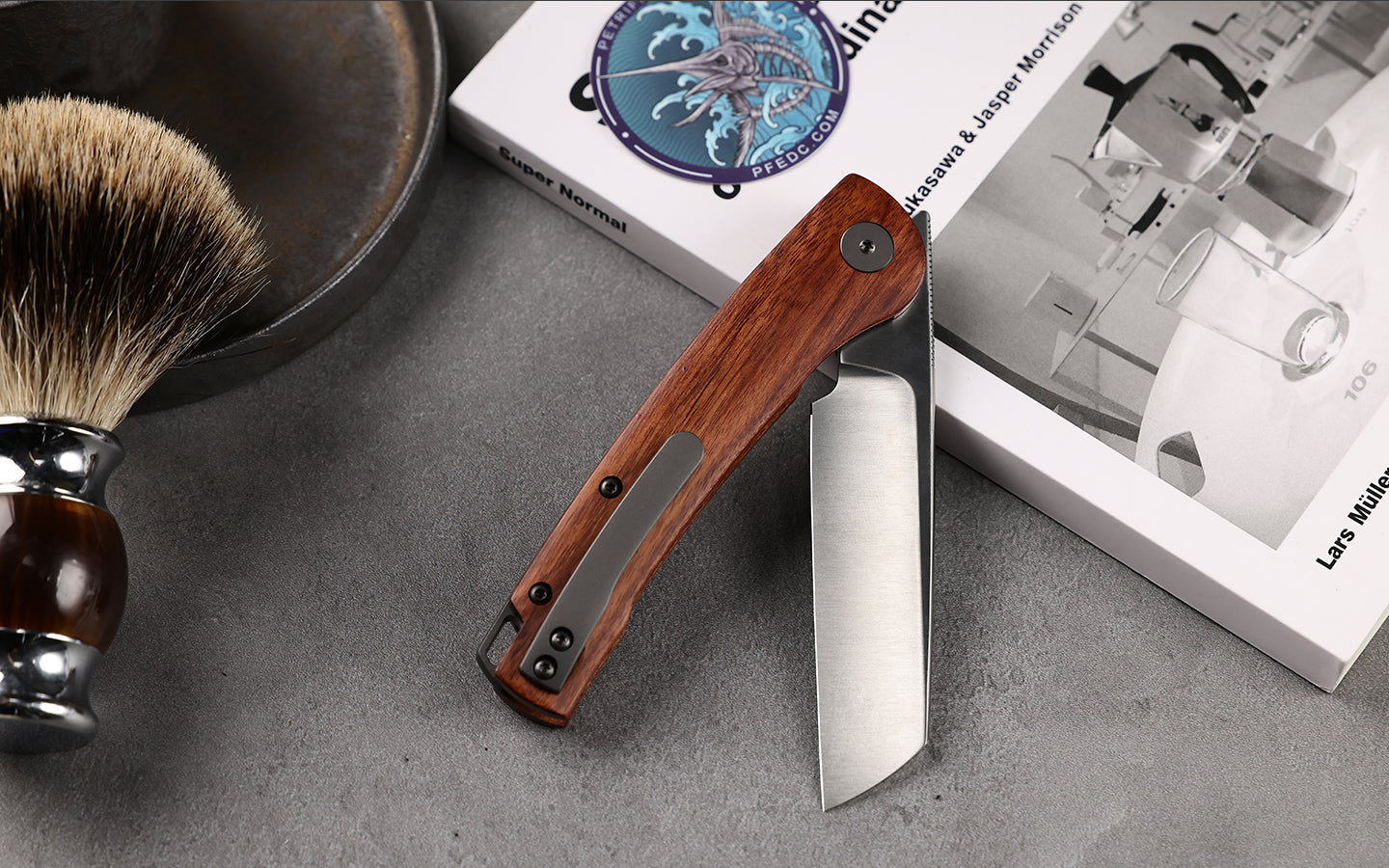 Petrified Fish PFE04 Scholar ,3.7" 154CM Satin/Stonewashed Blade, Front Flipper Liner lock Folding knife