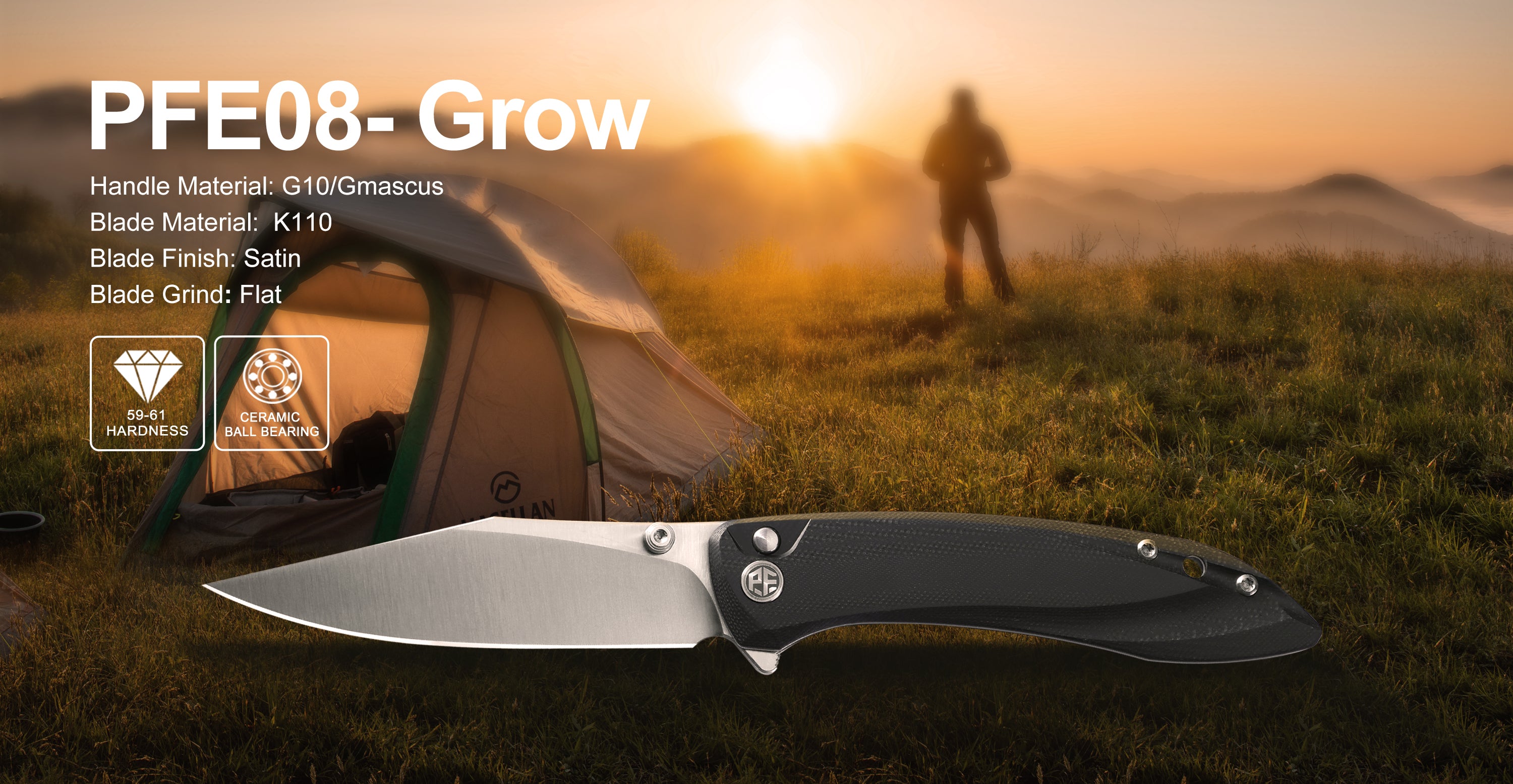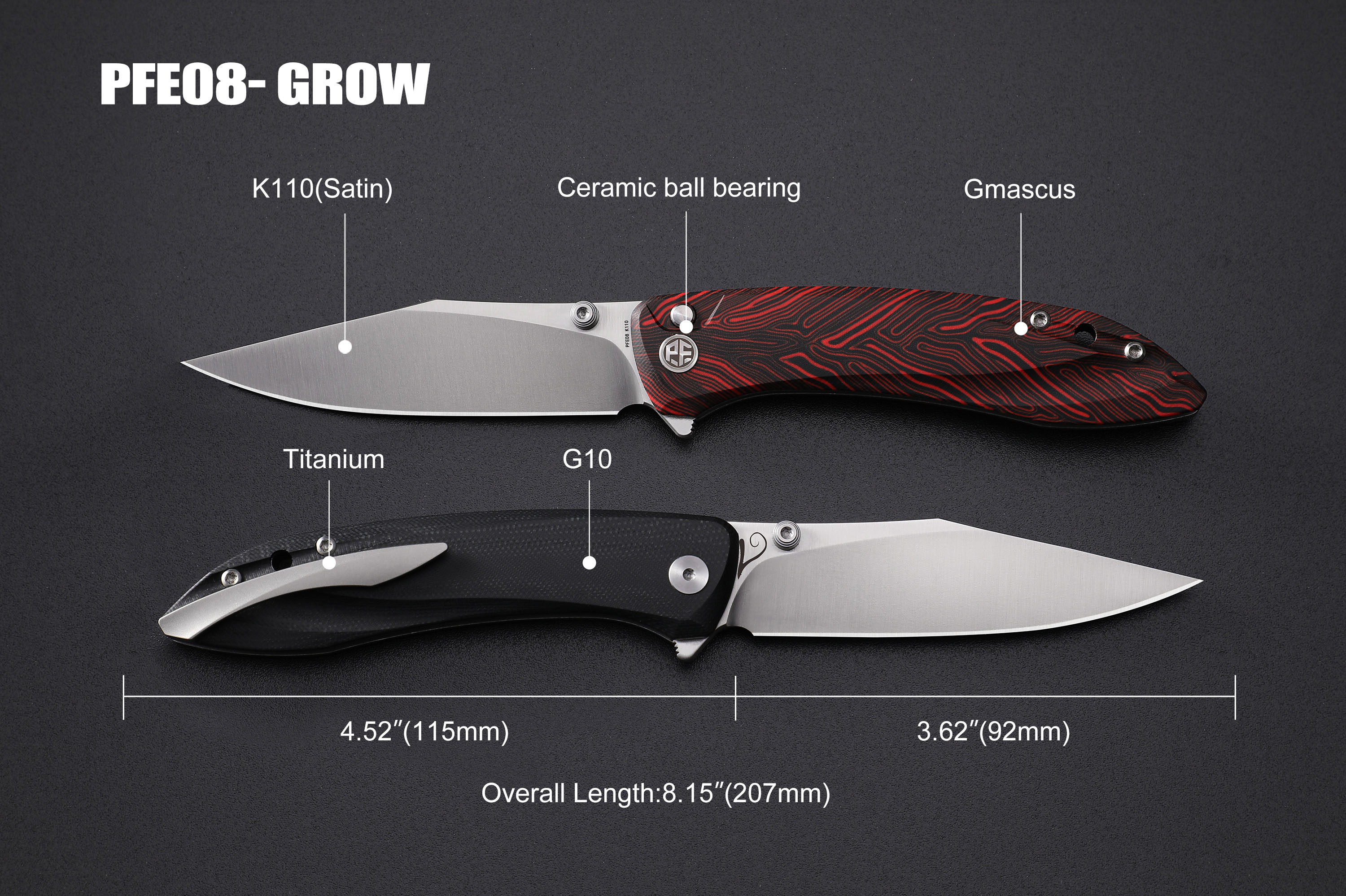 Petrified Fish PFE08 Grow ,3.62" K110 Satin Blade, 108g G10 Handle Button Lock Folding knife
