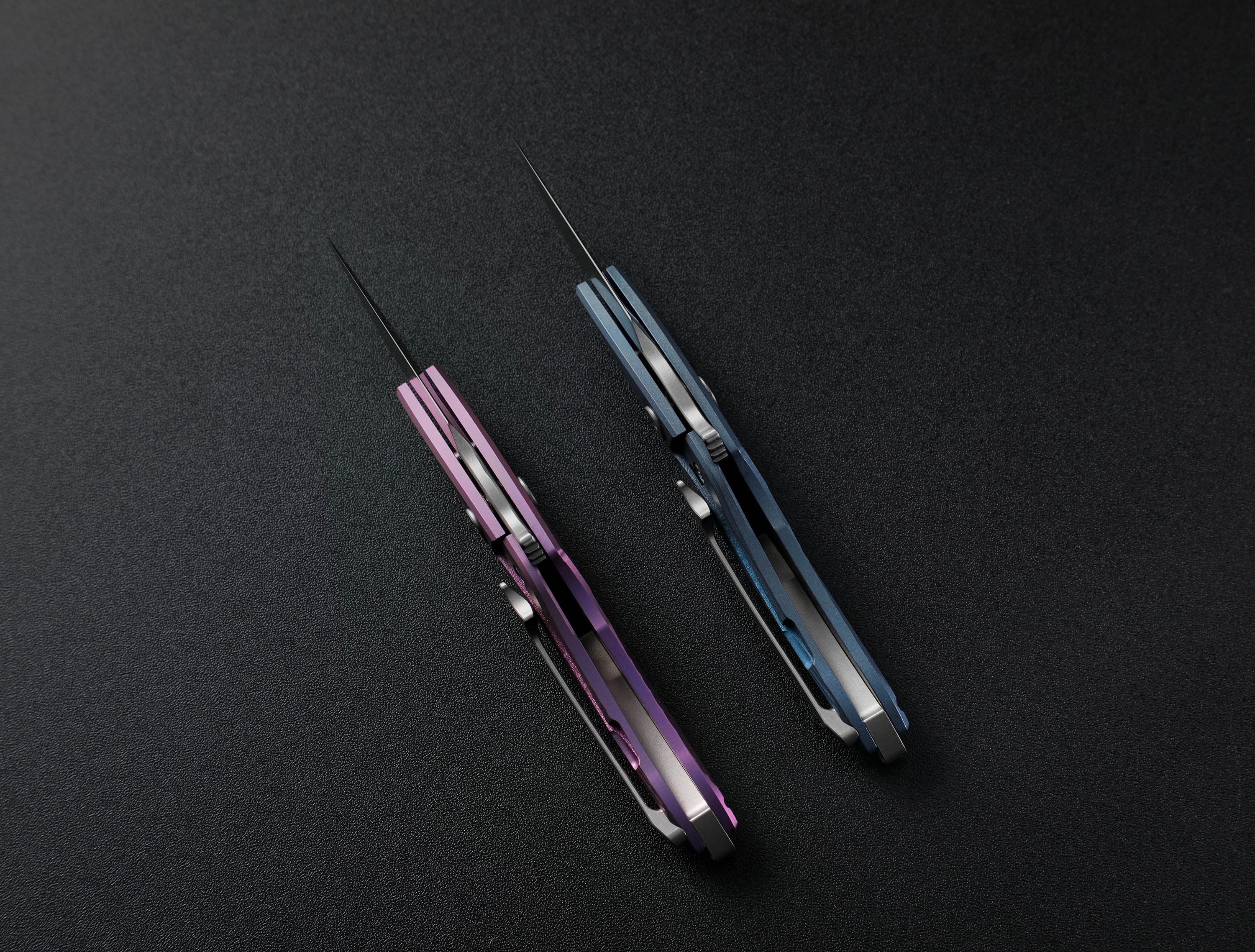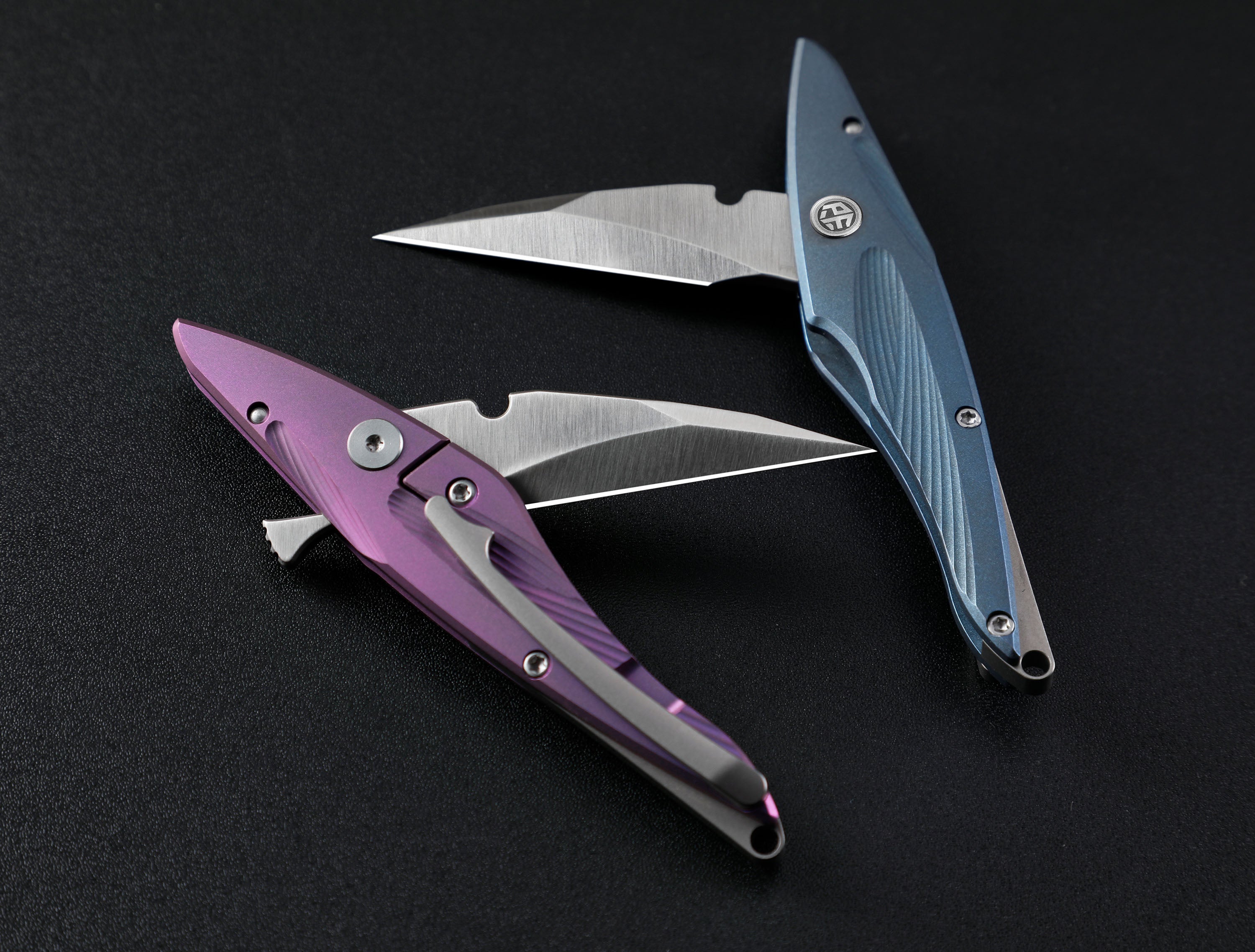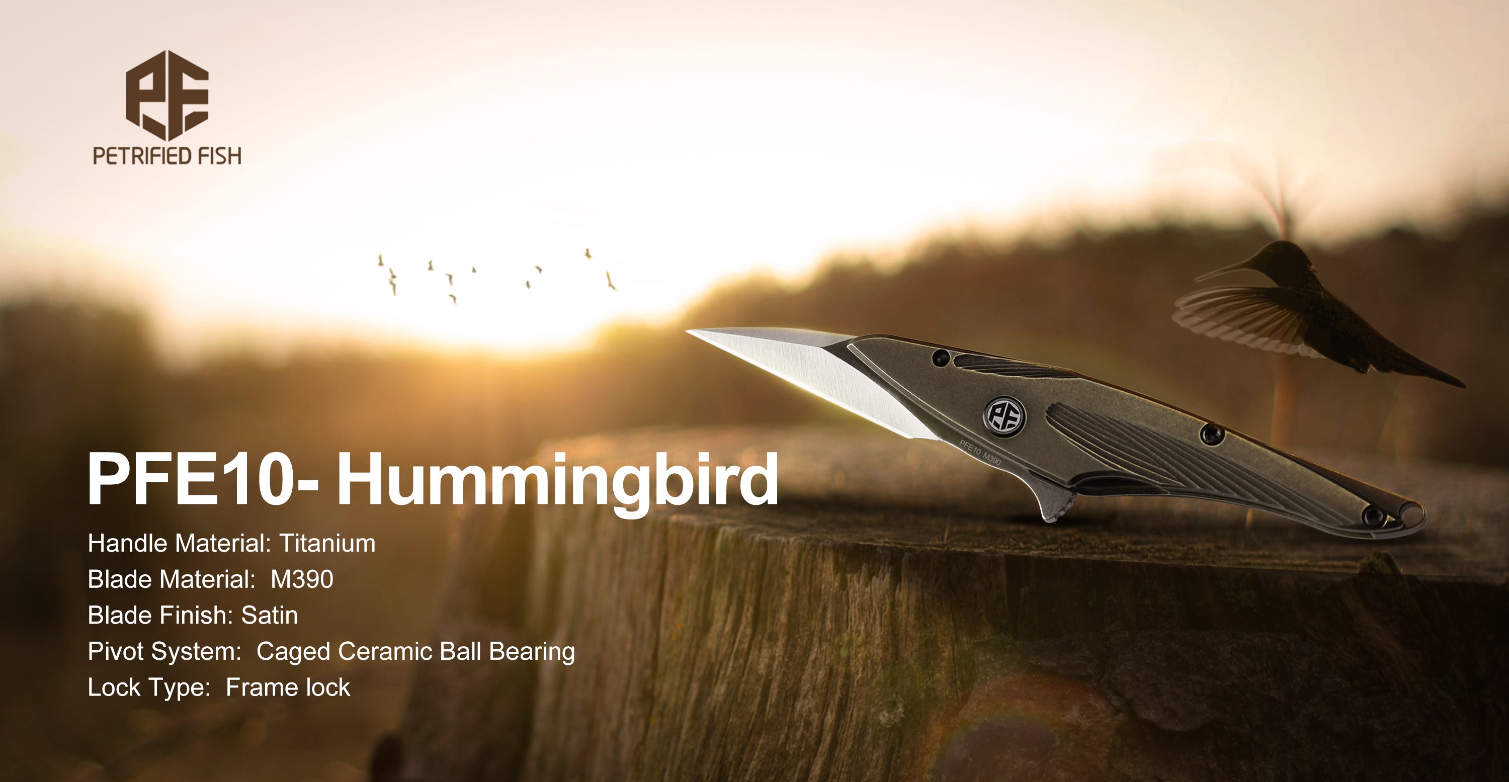 Petrified Fish PFE10 Hummingbird,1.06" M390 Satin/Black Stonewashed Blade, 30g Titanium Handle Frame lock Folding knife