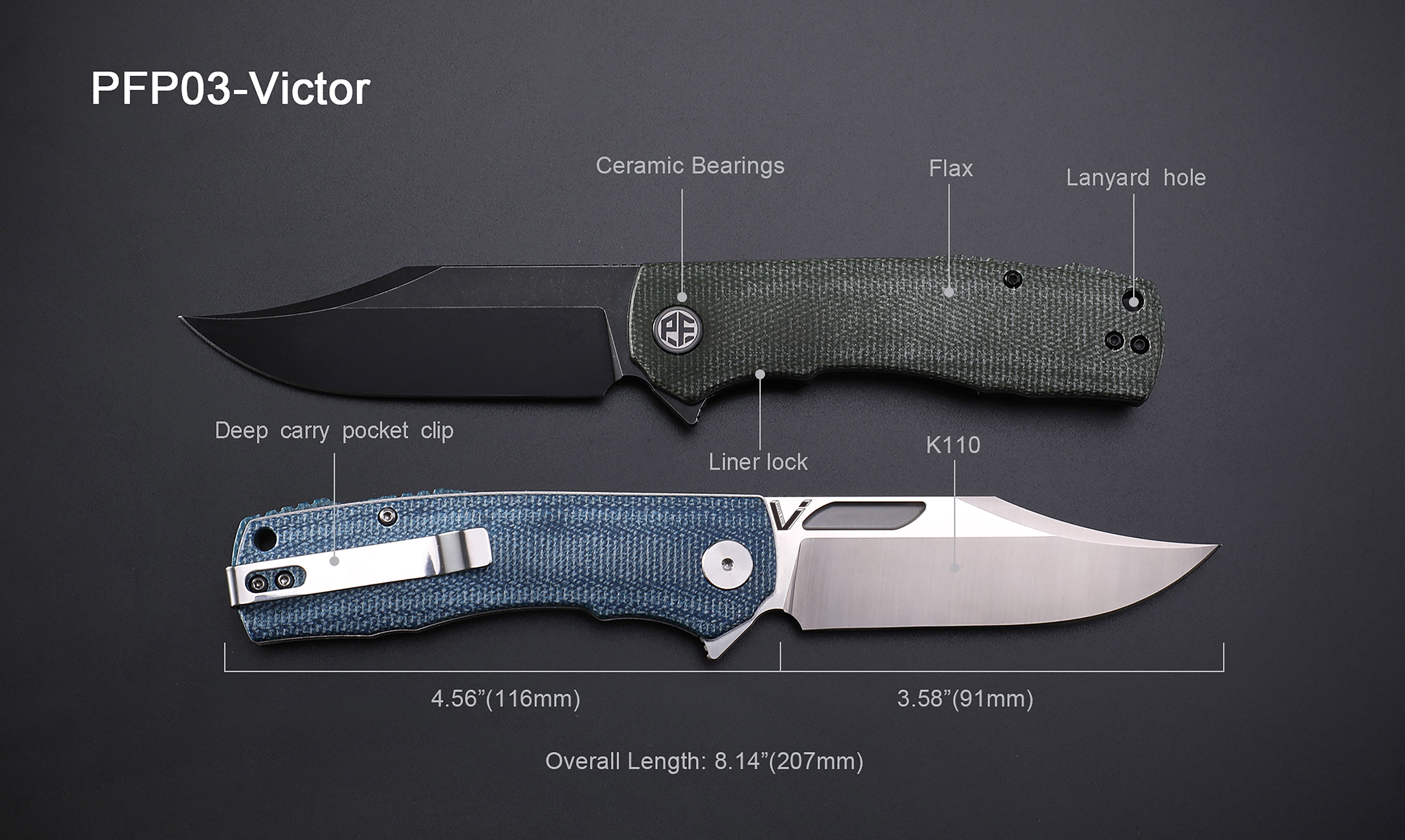 Petrified Fish PFP03 Victor ,3.58" K110 Satin Blade,140g Micarta Handle Flipper Liner lock Folding knife