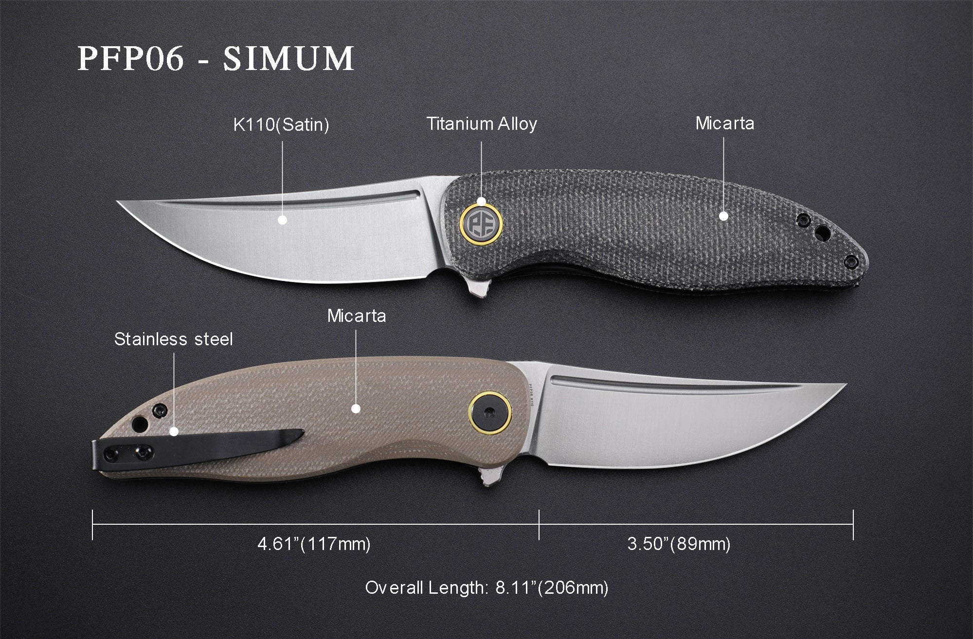 Petrified Fish PFP06 Simum,3.50” K110 Blade,Micarta Handle Flipper Liner Lock Folding Knife