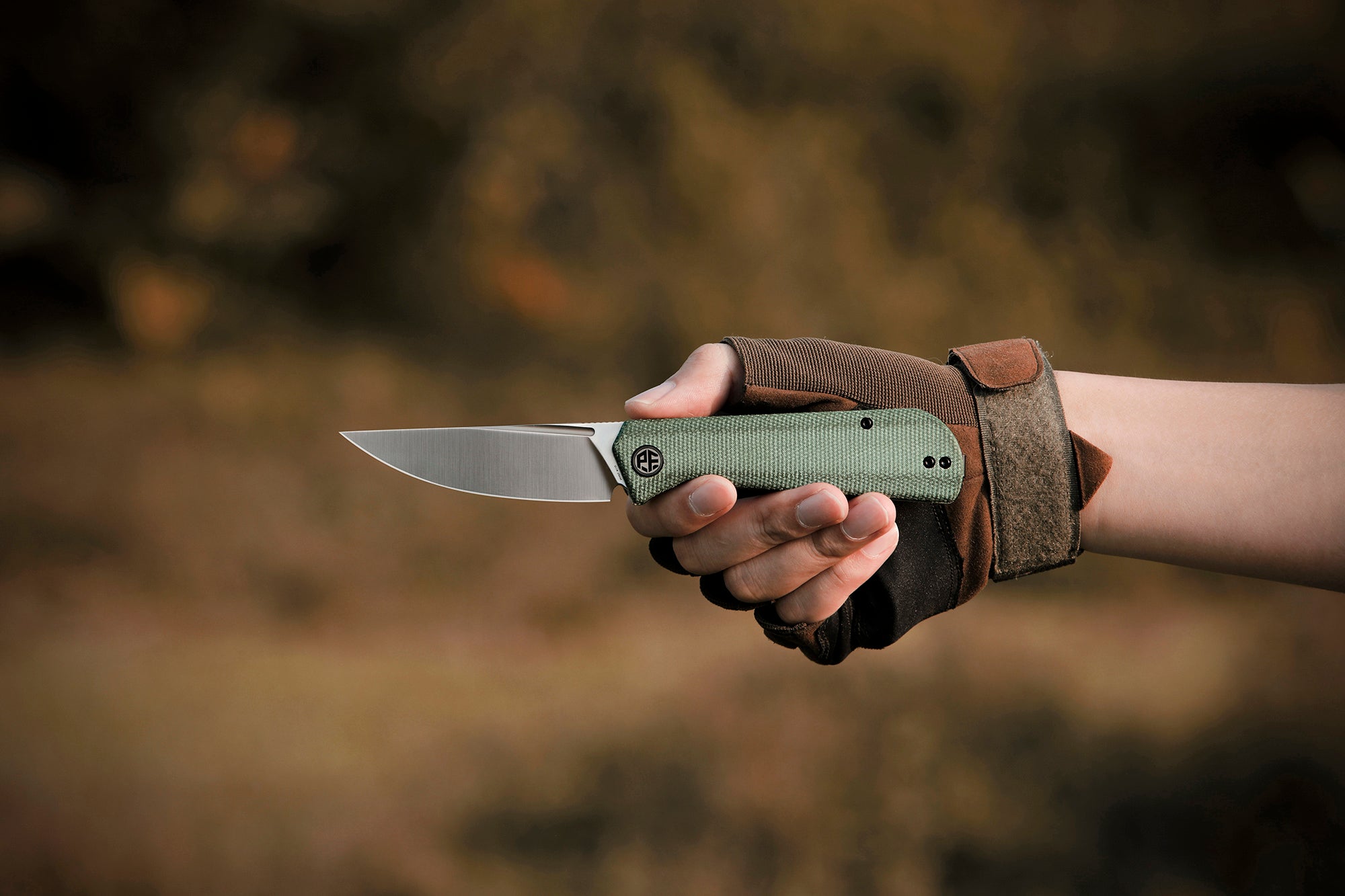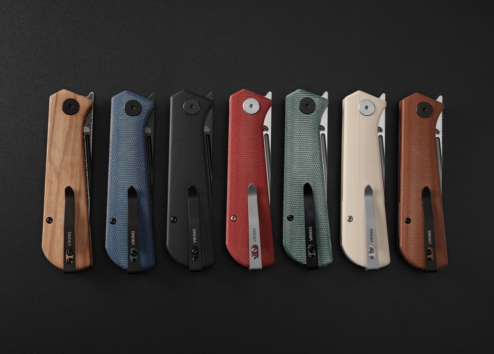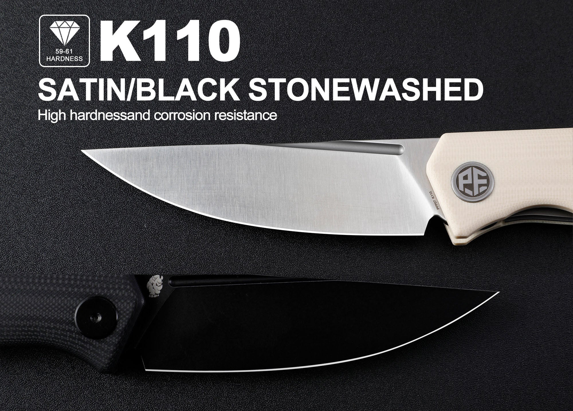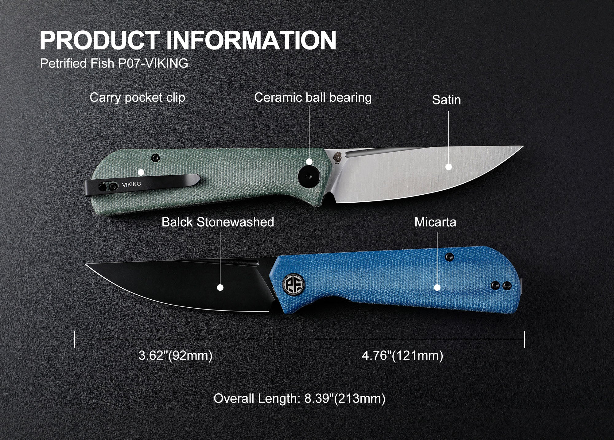 Petrified Fish PFP07 Viking,3.62" K110/Damascus Blade,G10/Micarta/Wood Handle Front Flipper Liner Lock Folding Knife
