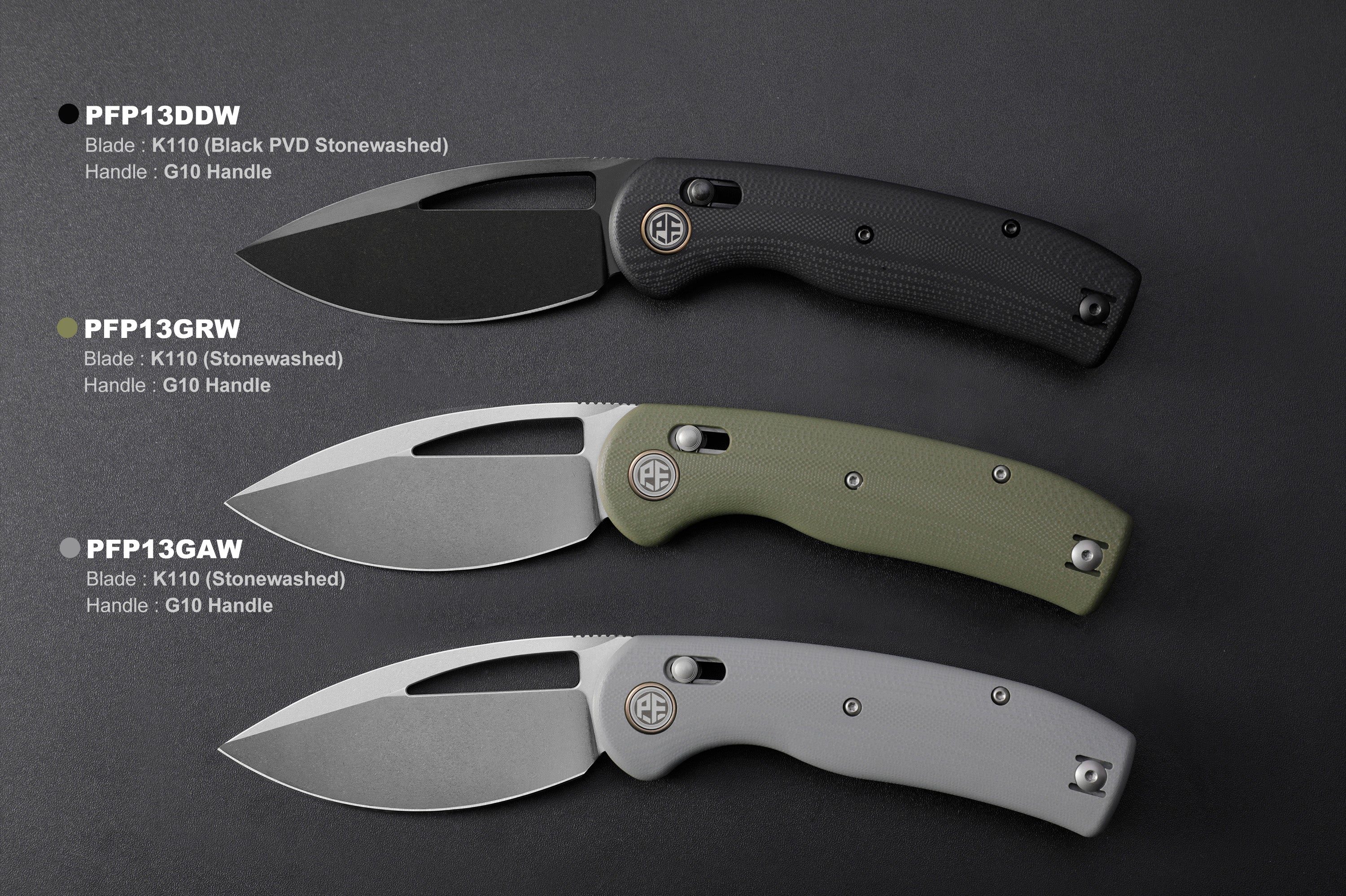 Petrified Fish PFP13 - Viper, 3.50" K110 Steel Blade, G10 Handle, Crossbar Lock Folding knife