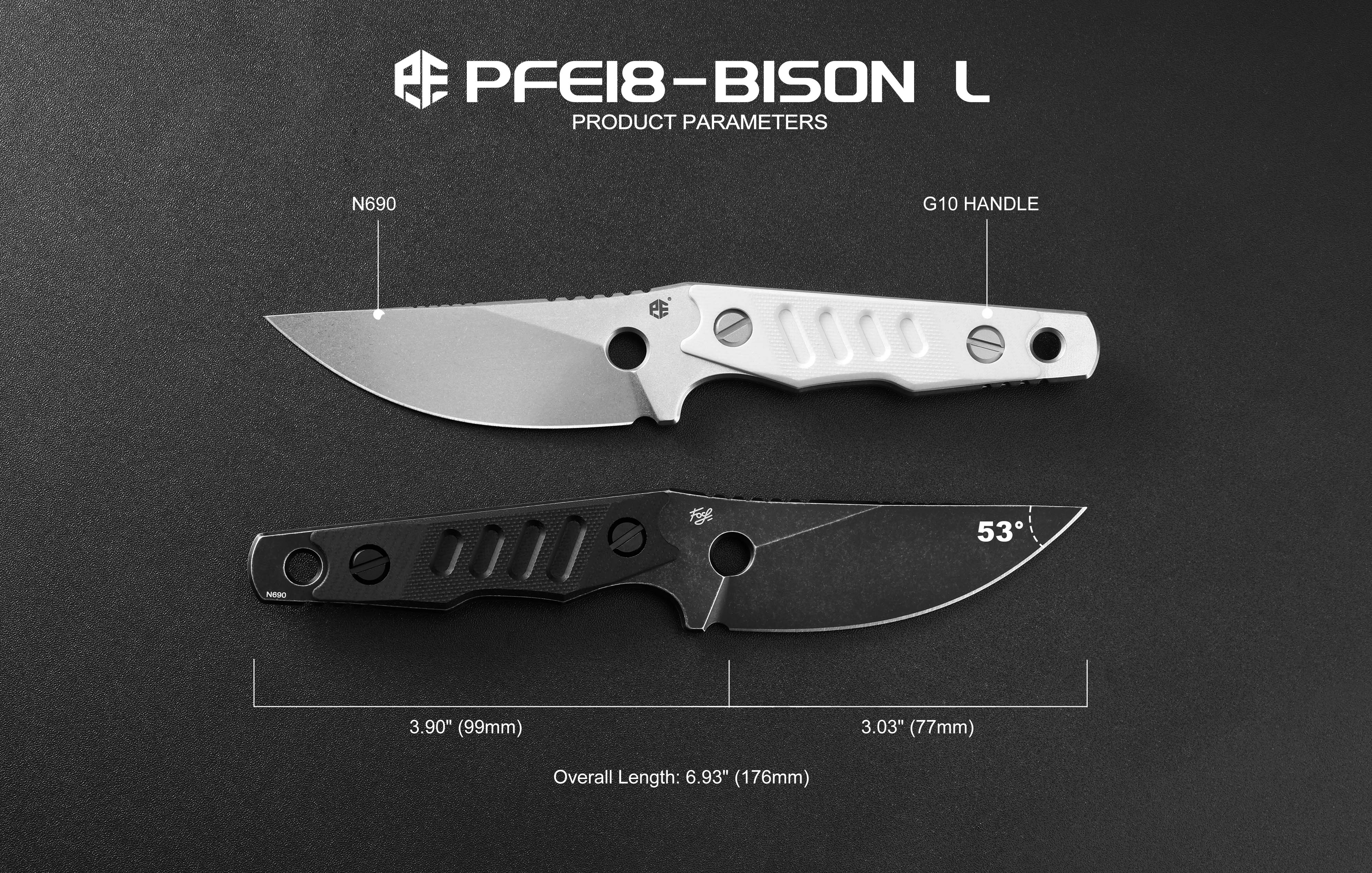 Petrified Fish PFE18 - Bison L, N690 Steel Skeleton knife